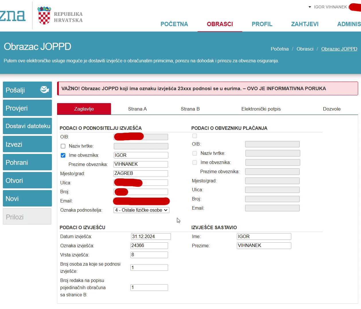 Sve ću vam pokazati na primjeru moje prijave poreza, tako da vidite stvarni slučaj. Nećemo gledati svaki detalj, samo osnovno da imate ideju kako to ide - detaljne upute su uvijek u mailu kao PDF.