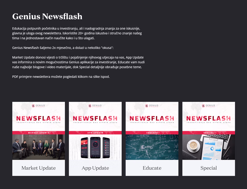 Ako nemate vremena pratiti društvene mreže ili web, 2x mjesečno šaljemo edukativni newsletter u kojem vas čekaju novi blogovi, video sadržaji, odgovori na pitanja i pojašnjenja pojmova iz svijeta investiranja.